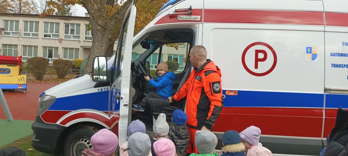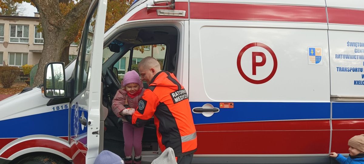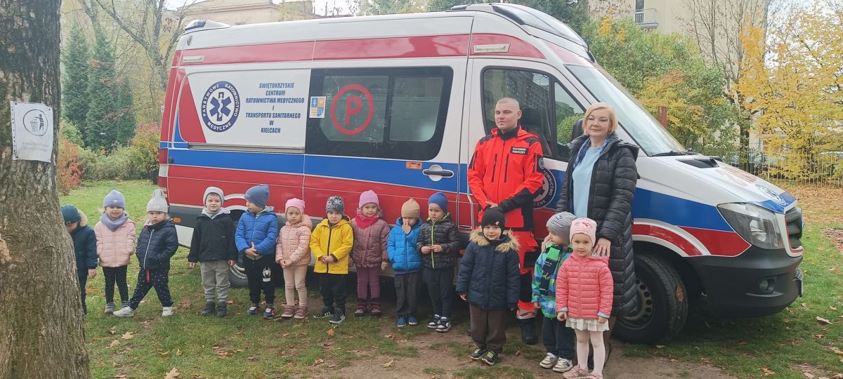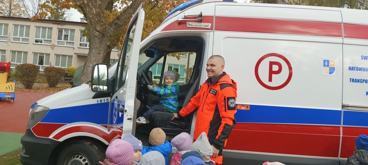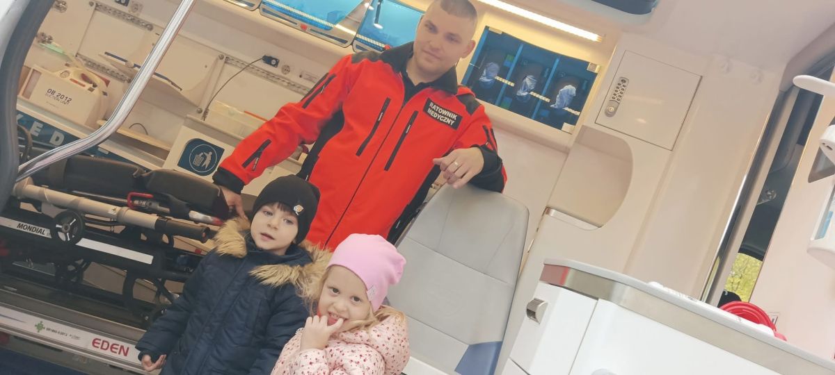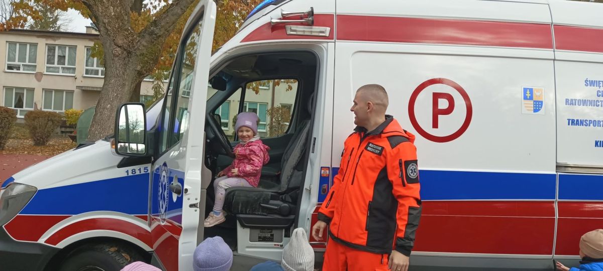 Swiętokrzyskiego Centrum Ratownictwa Medycznego i Transportu Sanitarnego w Kielcach . Pan Krzysztof Kwiecień opowiedział dzieciakom o zawodzie Ratownika Medycznego oraz o wyposażeniu
