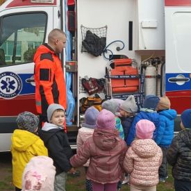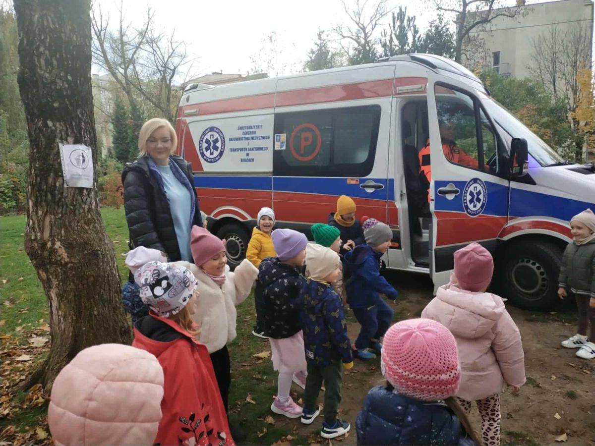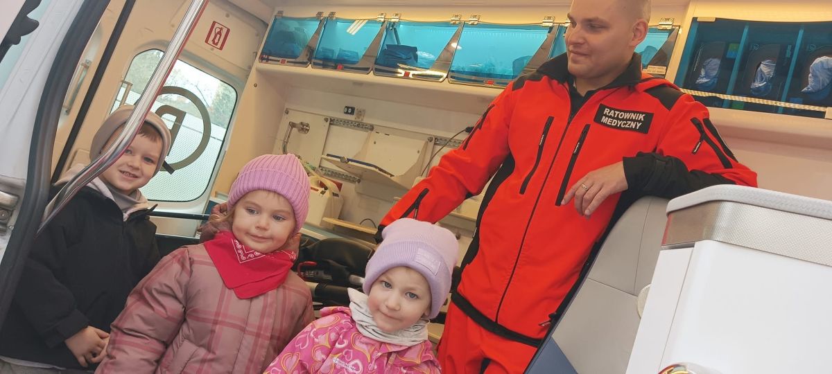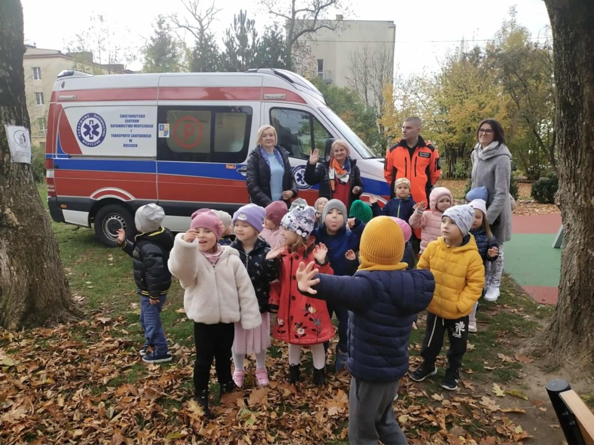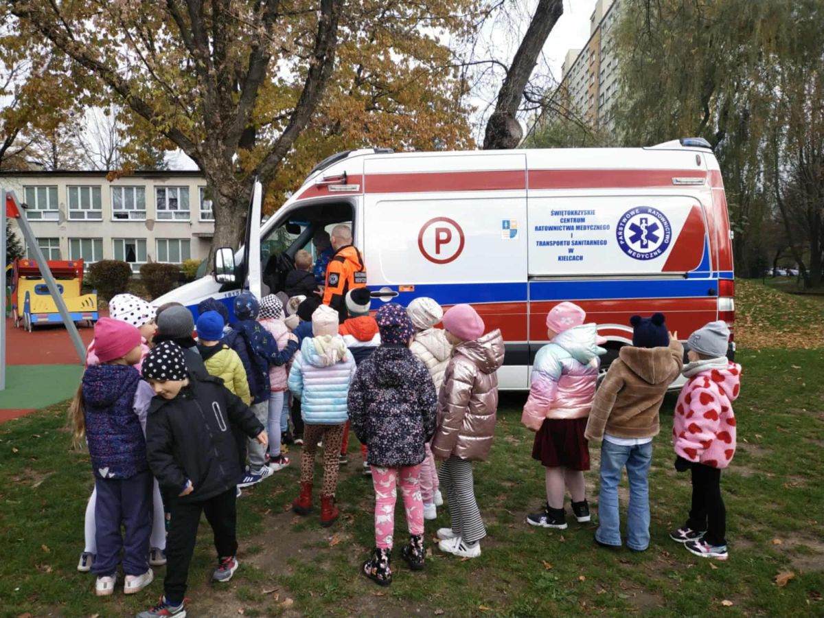 Swiętokrzyskiego Centrum Ratownictwa Medycznego i Transportu Sanitarnego w Kielcach . Pan Krzysztof Kwiecień opowiedział dzieciakom o zawodzie Ratownika Medycznego oraz o wyposażeniu