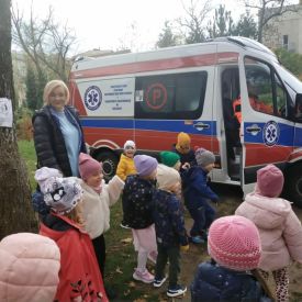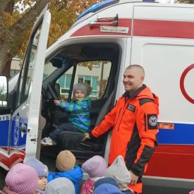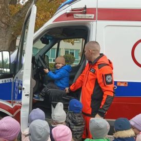 Ambulansu. Przedszkolaki mogły wejść do środka i obejrzeć, a nawet posiedzieć za kierownicą Serdecznie dziękujemy za tak cenną lekcję.