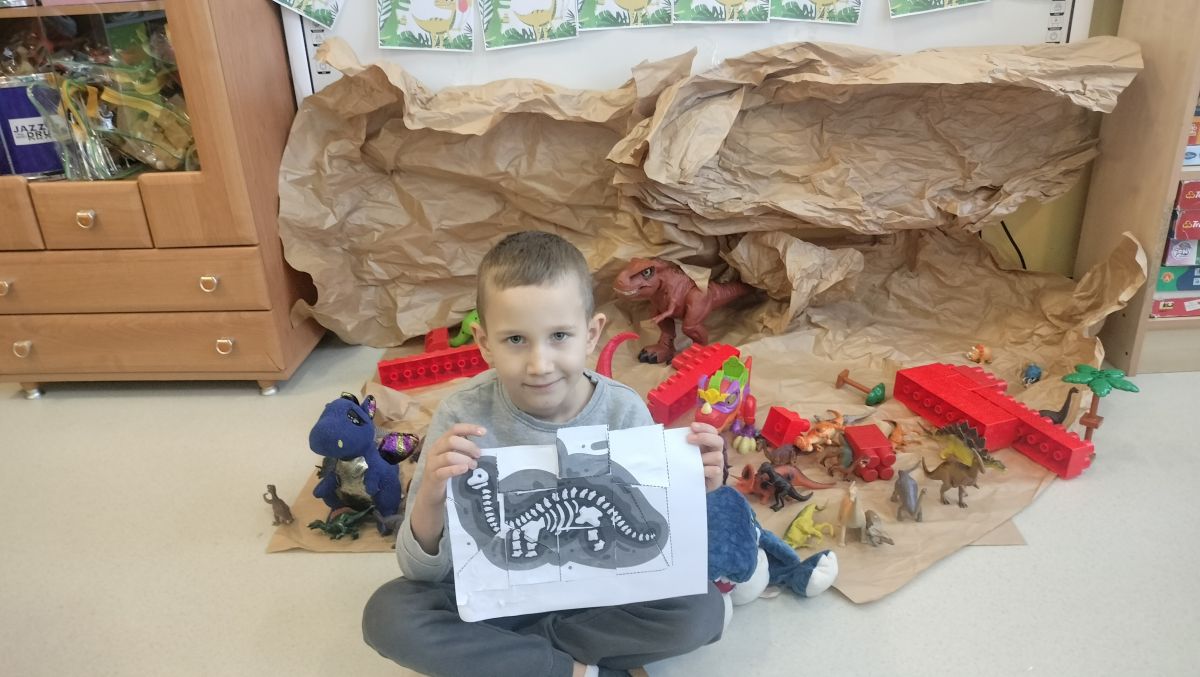 Opublikowano dnia 27.02.2026 r. Zabawy z dinozaurami w zbudowanej grocie troch臋 nauki zadania matematyczne, wycinanie i uk艂adnie puzzli mi艂o i przyjemnie sp臋dzony czas 馃馃馃